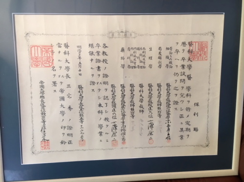 のある医術開業免許状が現存している。(日本政府は明治8年より医師に開業試験を課す制度を設けていた。)
