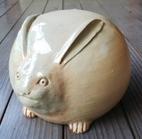 私は、このたび、保利家において、見節焼のうさぎの手あぶりが4個並んでいるのを見た。保利文溟と草場見節の厚誼を示していて、このうさぎたちは歴史の証人でもある。うさぎたちは同じようでいて、微妙に表情がちがう。献上唐津のやわらかい黄白色の土である。