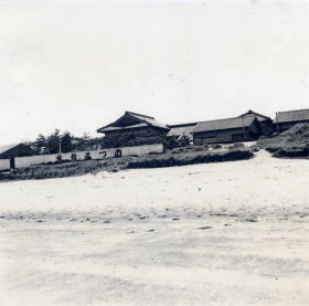 西の浜の水野旅館さんから古い写真をお借りしました。昭和初期にはこの浜がこんなに遠浅だったのです。埋め立てがあるまでは、ずっとそうでした。水野様に感謝。