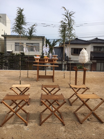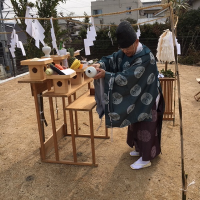 Jichinsai is a ritual in Shintoism. We ask the God of the land to let us use His