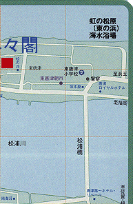洋々閣の前の細い道が、昔の本通でした。 舞鶴橋が出来てから、道路拡幅により、広いきれいな道が南側にでき、洋々閣は裏通りにカクレンボしました。 そこで、地図上で洋々閣への道の見つけ方ですが、 1.松浦橋の北の端の交差点を見つける。 2.唐津城の右下の舞鶴橋の東の端を見つける。 3.1と2のほぼ中央にさかさまのT字路がありますね。そこが、東唐津2丁目信号で、 100円バス停車位置、です。 4.そこを入って左側2本目タバコ屋を左へ入る。 .5.右側に古い木造2階建ての大きな建物があります。 6.ようよう見つけたようよう閣!ほんとにようよう来てくださいました。 7.駐車場は建物の西側と、玄関の向かい側とにあります。 お疲れさまでした。 なお、洋々閣へは西側から入るのは道が細くておすすめできません。 |